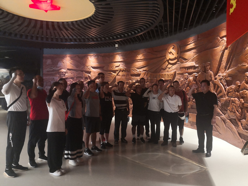 在《红旗不倒》展厅,全体党员一同重温那段令人热血沸腾的光辉岁月。随后,在公司党总支书记陈卫东的带领下,全体党员面向党旗,重温了入党誓词:“我志愿加入中国共产党,拥护党的纲领,遵守党的章程……”,全体党员声音铿锵、神情庄重地许下对党和人民的承诺。
