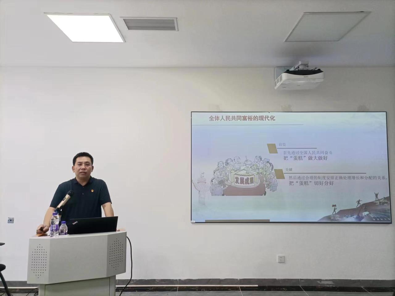为了深入学习贯彻习近平新时代中国特色社会主义思想,5月23日上午,公司党总支在多功能体育馆136会议室举行主题教育专题辅导报告会。辅导报告会由公司党总支书记陈卫东作题为《走好中国式现代化之路》专题党课。学院全体党员、教研室主任、科室负责人、发展对象等40余人参加辅导报告会。